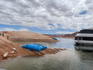 Beach Bags™ are specifically engineered for use on Lake Powell and have been wind load tested to provide houseboat moorings withstanding +60 mph broadside winds. They've successfully anchored all shapes and sizes of houseboats including frequent anchorings of Lake's largest +120 foot, 5-story tall vessel .